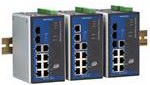 RS-232/422/485, a Ethernet RJ45 o fibra óptica, montaje en riel DIN, panel o rack, temperaturas de operación extendidas